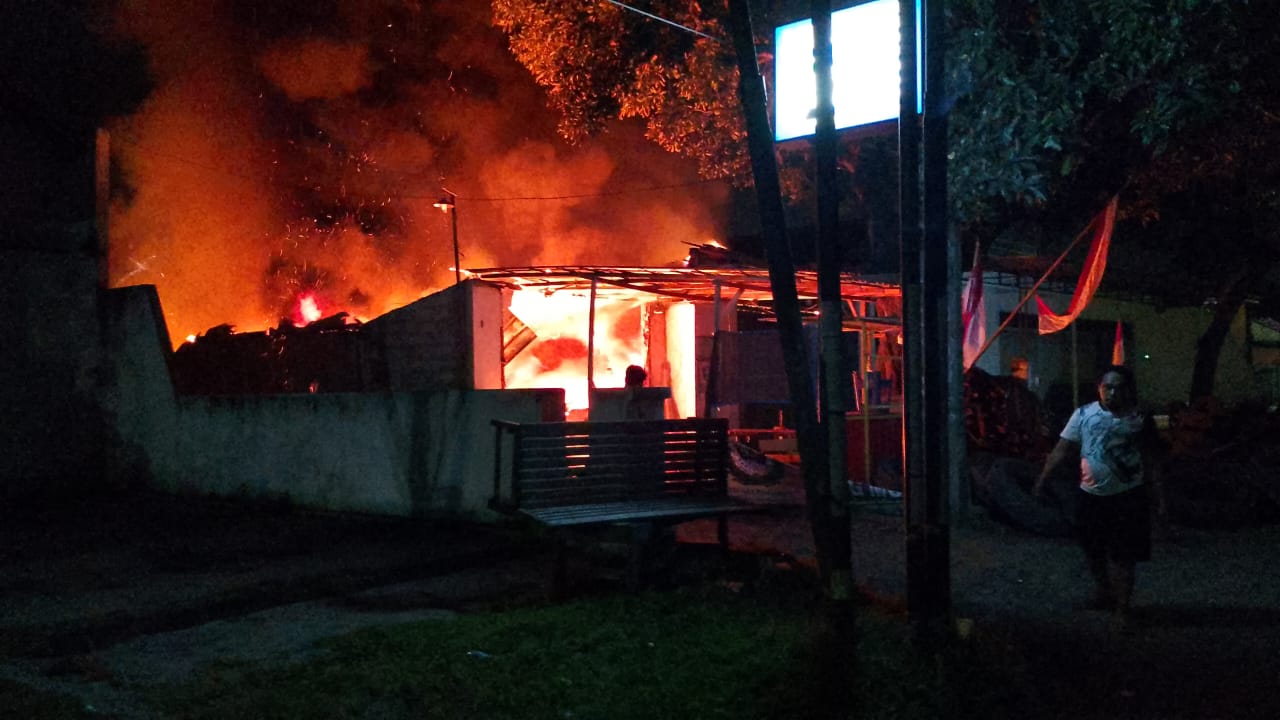 Banyuwangi, kuasarakyat.com – Api membumbung tinggi membakar habis bengkel tambal ban yang ada di desa Wringinagung, kecamatan Gambiran, Banyuwangi, pada Kamis (21/08/25).