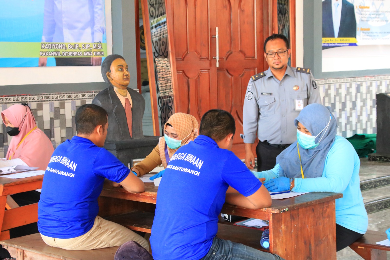 Petugas kesehatan dari Puskesmas Mojopanggung juga memberikan edukasi kepada warga binaan mengenai pentingnya pencegahan HIV/AIDS serta pola hidup sehat.
