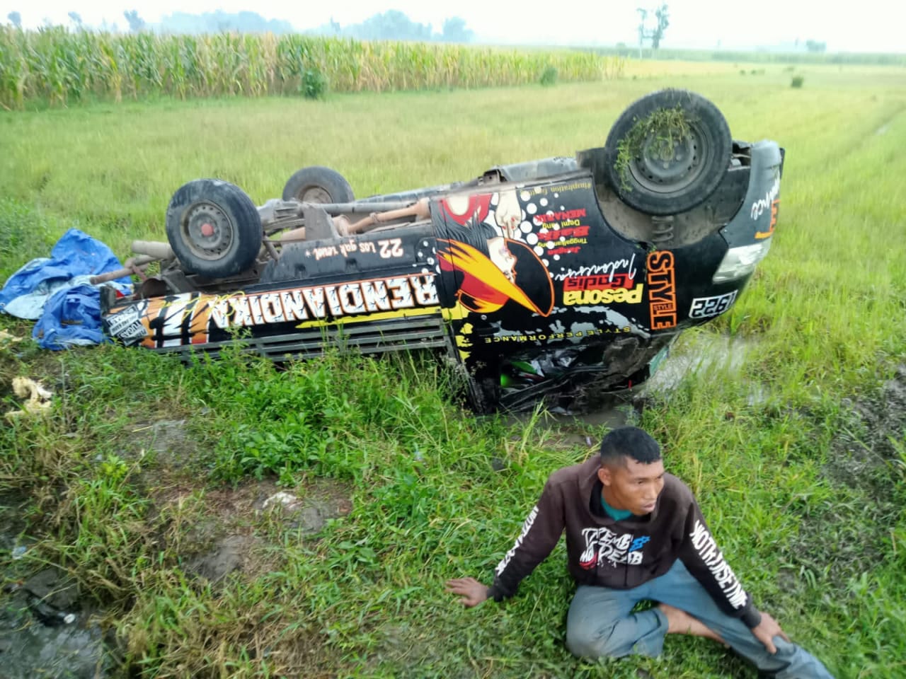 Diduga Supir Ugal Ugalan, Pick Up Angkut Petani Terbalik, Satu Tewas