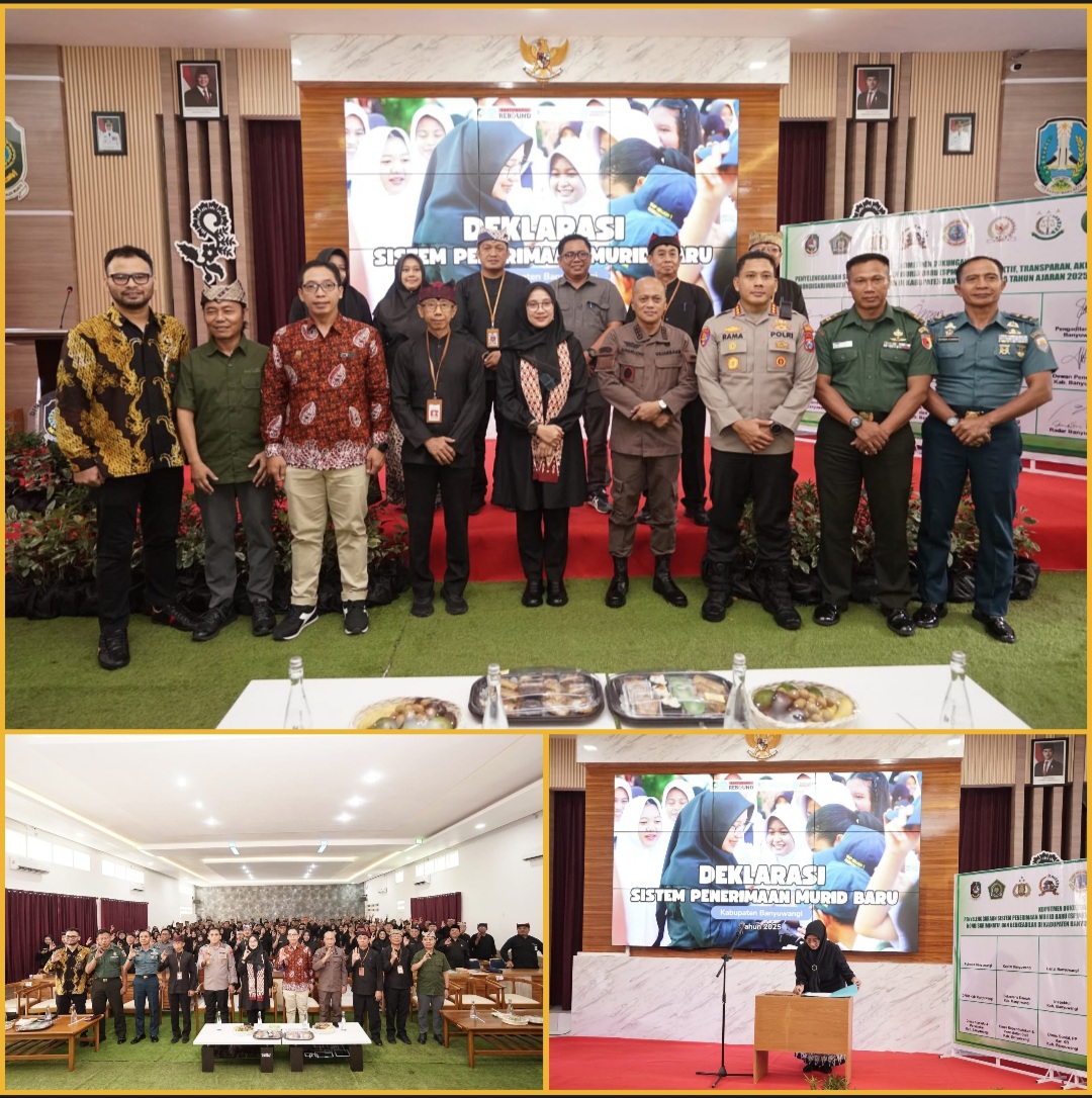 BANYUWANGI, kuasarakyat.com – Pemkab Banyuwangi, Forkopimda, dan pihak-pihak terkait menggelar Deklarasi Sistem Penerimaan Murid Baru (SPMB) untuk tahun ajaran 2025/2026, Kamis (15/5/2025). Deklarasi itu untuk menekankan proses pelaksanaan SPMB yang bersih, dan menekankan semua anak harus sekolah.