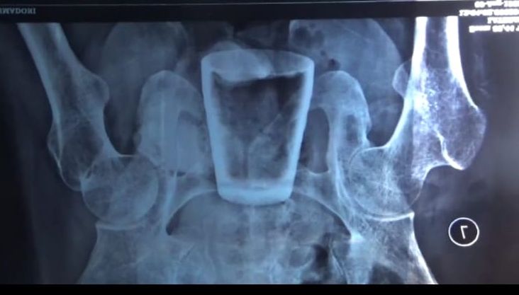 Karena kondisi yang tidak kunjung membaik ini, oleh mantri dirinya disarankan untuk melakukan rontgen. Hasilnya mengejutkan, karena didalam perutnya terdapat sebuah gelas bersarang dengan bagian atasnya pecah.