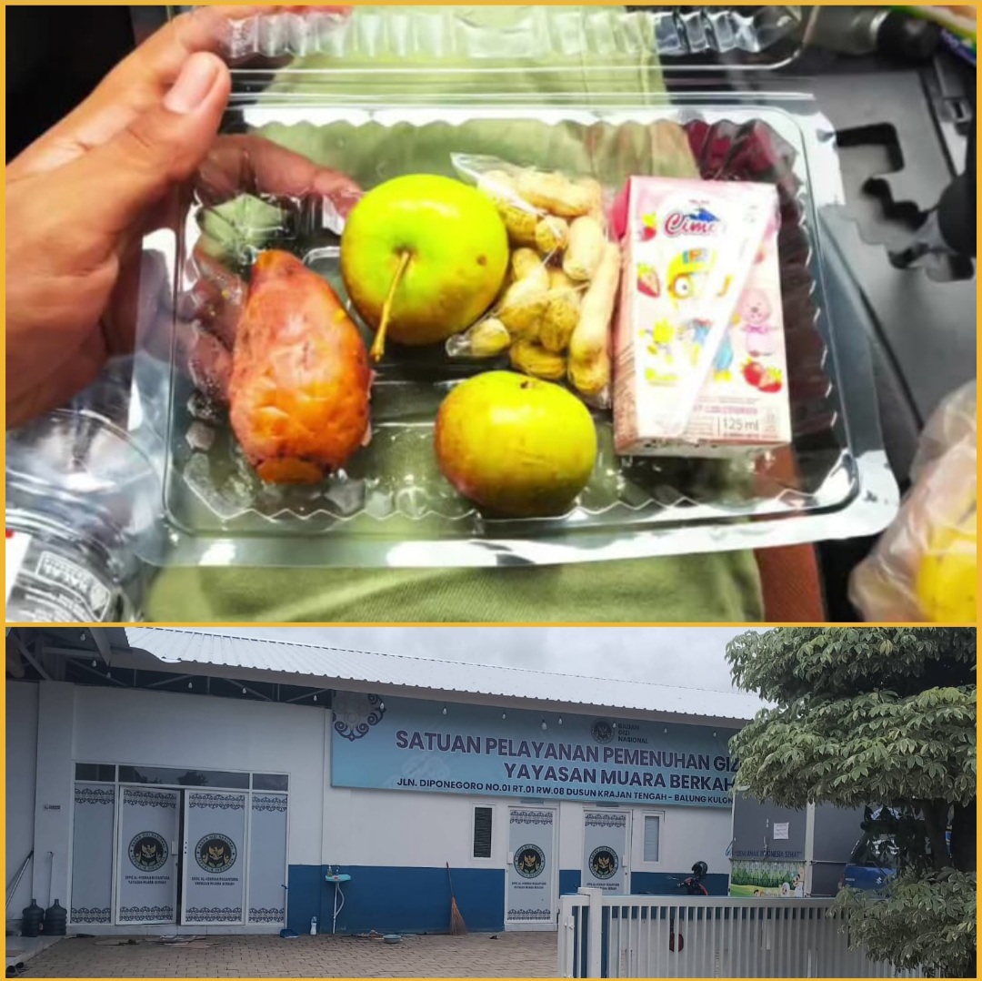 Bagaimana tidak, setiap siswa di sekolah tersebut, mendapat MBG tidak di wadahi mengunakan baki sebagaimana mestinya, termasuk menu yang disajikan, dari data yang diterima media ini, MBG di sekolah tersebut dibungkus menggunakan plastik mika dengan isi, satu bungkus kacang tanah garing, 1 buah Ubi ungu, 1 buah susu ultra, dan dua buah apel ukuran kecil, dan tanpa nasi.
