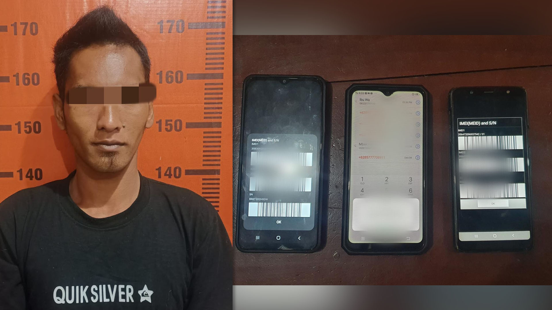 Pelaku dengan inisial SM (32), ditangkap lengkap dengan barang bukti berupa 3 buah Handphone curian. Setelah dicocokan dengan Dosbook milik korban bernama Aminah Hesti, warga Jalan Jl Kartini Desa Tanggul Wetan Kec Tanggul Kabupaten Jember, ternyata identik.