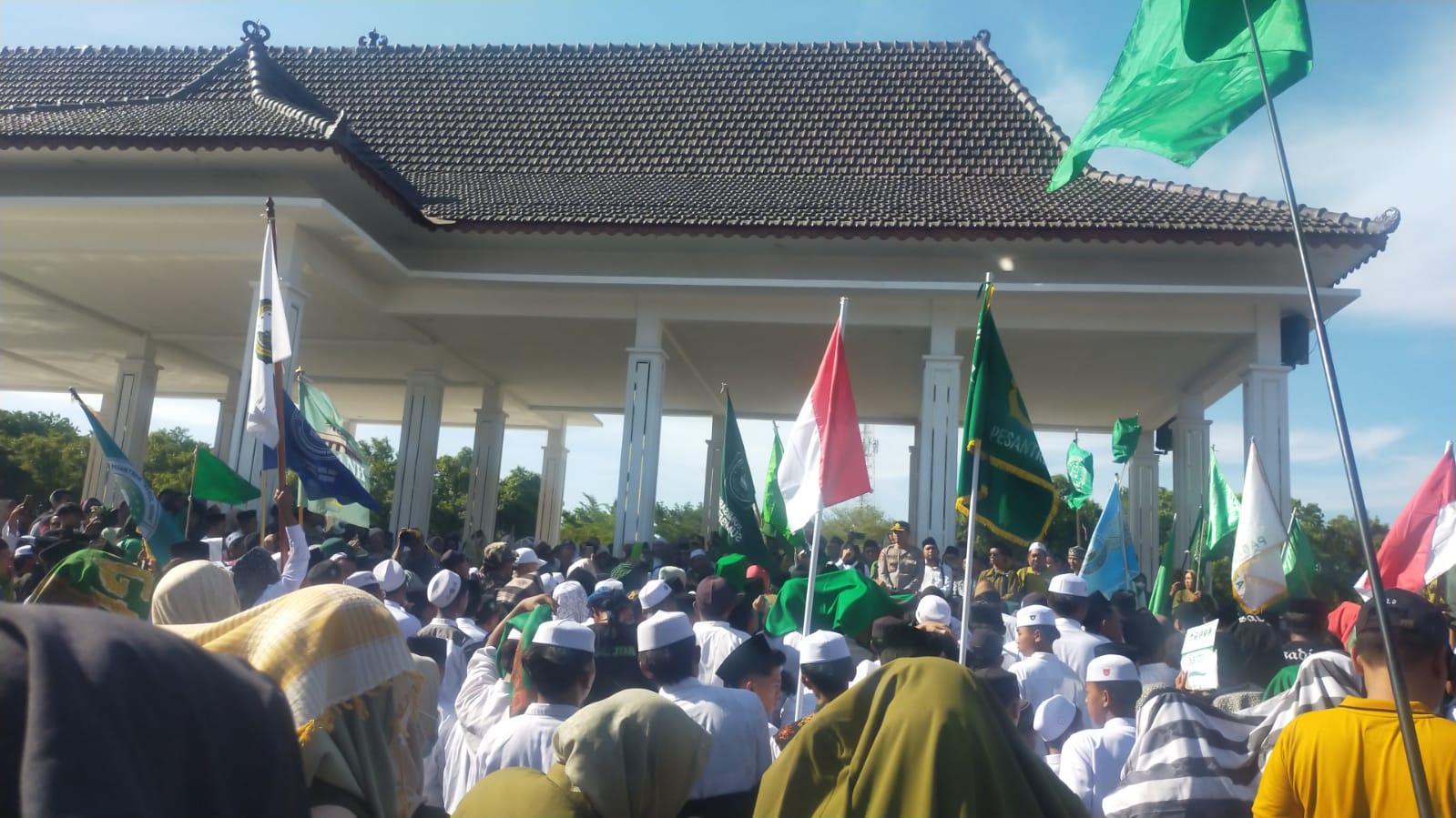 Massa berkumpul sejak pukul 13.00 WIB, mengenakan pakaian santri dan membawa poster-poster bertuliskan tuntutan seperti “Bela Kiai, Bela Pesantren”, “Cabut Izin Siar Trans7 Sekarang!”, dan “Jaga Martabat Pendidikan Islam”. Orasi dari berbagai perwakilan pondok pesantren mengemuka, mulai dari kecaman terhadap media hingga seruan agar semua pihak menjaga adab dan penghormatan terhadap kiai dan lembaga pendidikan pesantren.