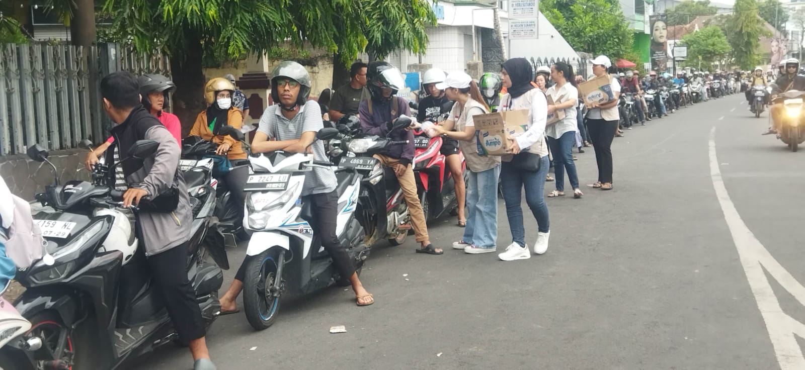 Atas fenomena itukah, Novi panggilan Novita Brastiana bersama anggota Love Charity Indonesia merasa terpanggil dan peduli membantu warga yang sedang antri BBM.