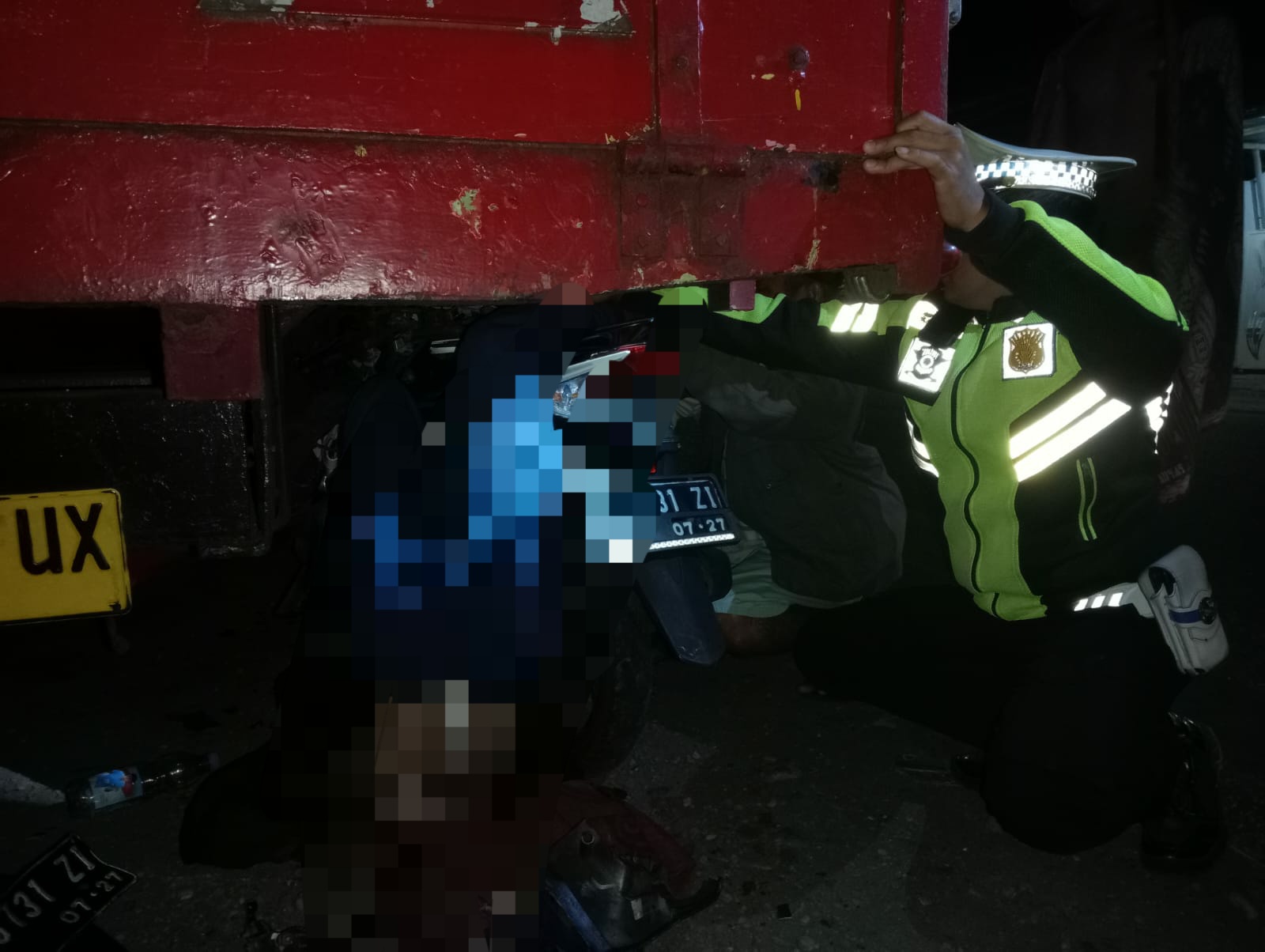 Bersamaan itu, lanjut dia, melaju kendaraan Honda Vario yang dikemudikan korban. Motor kemudian oleng ke kiri dan menabrak bagia belakang truk.