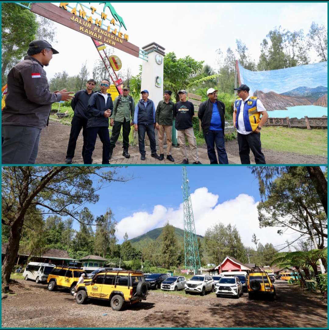 Pemkab Banyuwangi menggelar rapat koordinasi bersama stakeholder terkait membahas peningkatan sarana dan prasarana penunjang, Sabtu (31/5/25). Rakor yang digelar di kawasan Paltuding Gunung Ijen, Kecamatan Licin tersebut, dihadiri Pj Sekretaris Daerah Banyuwangi Guntur Priambodo, Legal Head Perhutani Banyuwangi Barat, Eko Hadi; Kepala Seksi V BKSDA Banyuwangi, Dwi Sugiarto; serta jajaran OPD terkait Pemkab Banyuwangi.
