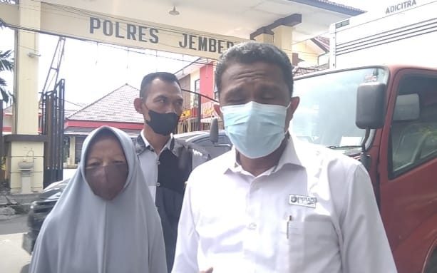 Keluarga korban bersama kuasa hukumnya usai melaporkan hilangnya korban ke Mapolres Jember