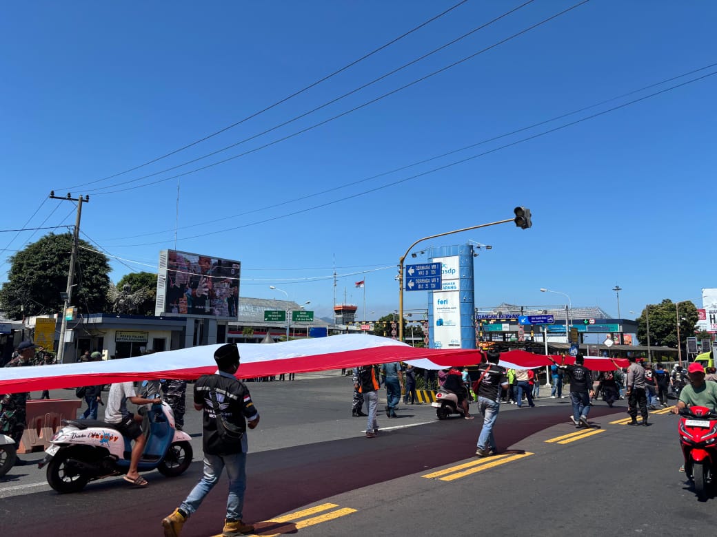 Protes Kemacetan Pelabuhan, Ratusan Sopir Bentangkan Kain Merah Putih Sepanjang 500 Meter