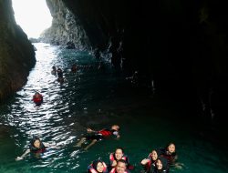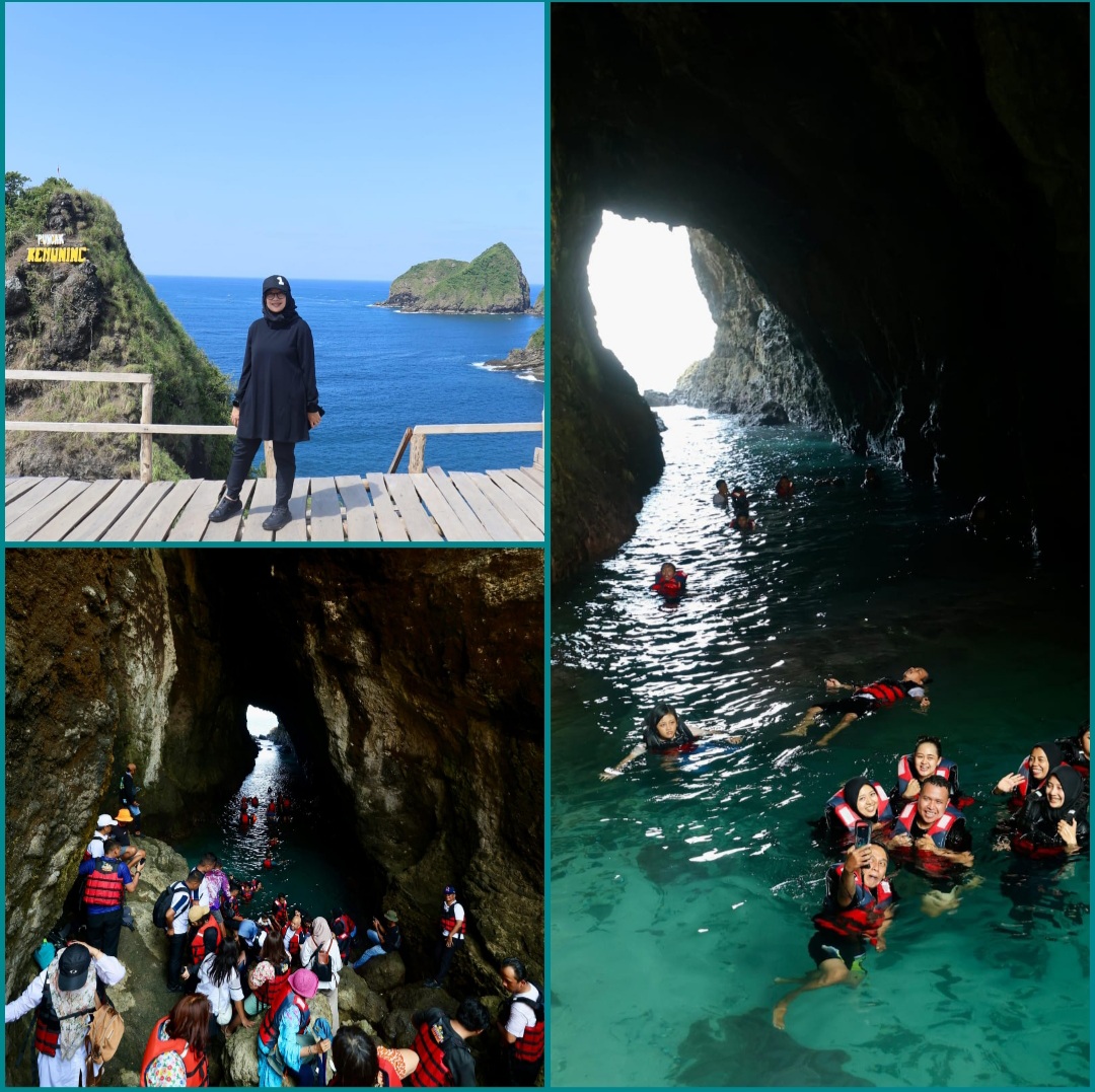 Bupati Ipuk juga ikut berenang merasakan kesegaran air di laguna yang ada di Pulau Bedil. “Ingin rasanya berlama-lama di sini. Ayo datang dan nikmati langsung keindahannya,” kata Ipuk.