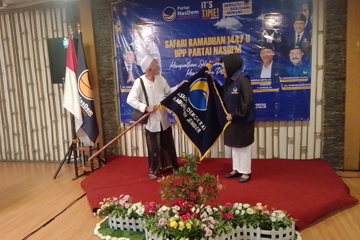 Jember, kuasarakyat.com – Kegiatan Safari Ramadhan yang digelar oleh DPP, dan DPW Partai Nasdem ke Jember pada Minggu (1/3/2026) malam, mendapat ‘kado’ pengembalian bendera Pataka ormas Nasional Demokrat dari KH. Syaiful Rizal yang juga pendiri cikal bakal Partai Nasdem di Jember.