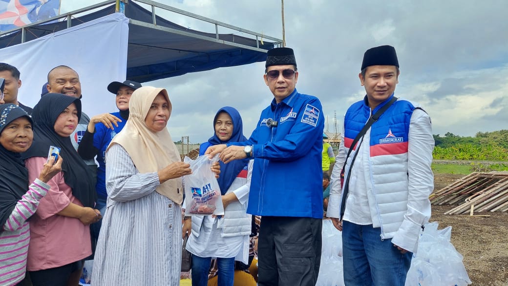 Daging hewan kurban itu disembelih untuk dibagikan kepada masyarakat dan para kader Partai Demokrat.