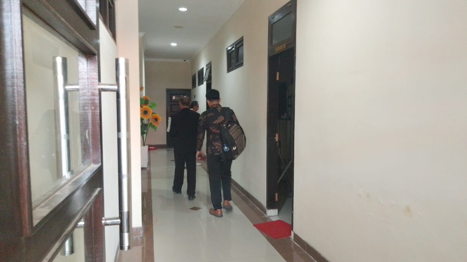 Yoga kepada wartawan menyatakan, bahwa kliennya tidak menghadiri sidang karena sedang dinas kerja di Bondowoso. “DSN tidak hadir karena ada urusan pekerjaan, dan saya sebagai kuasa hukum beliau datang menghadiri undangan sidang dan sidang tadi hanya memeriksa kelengkapan berkas untuk selanjutnya mediasi,” ujar Yoga.