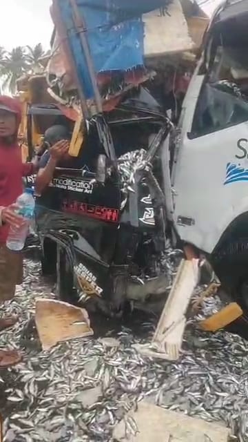 Benturan keras itu mengakibatkan bagian depan kedua kendaraan mengalami ringsek, terparah mobil pikap. Kecelakaan ini juga membuat muatan ikan tumpah di jalan.