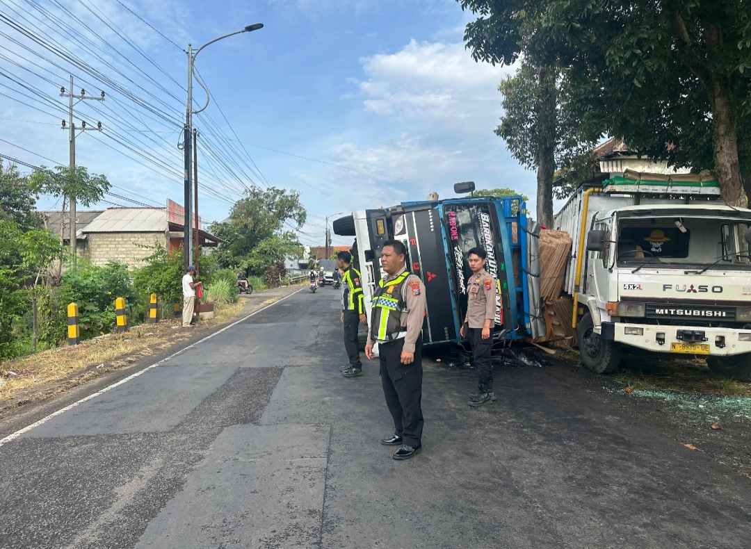 “Akibat kejadian itu, truk yang sedang parkir mengalami kerusakan pada bagian bak dan kabin karena tertimpa kendaraan tronton yang terguling,” tambahnya.