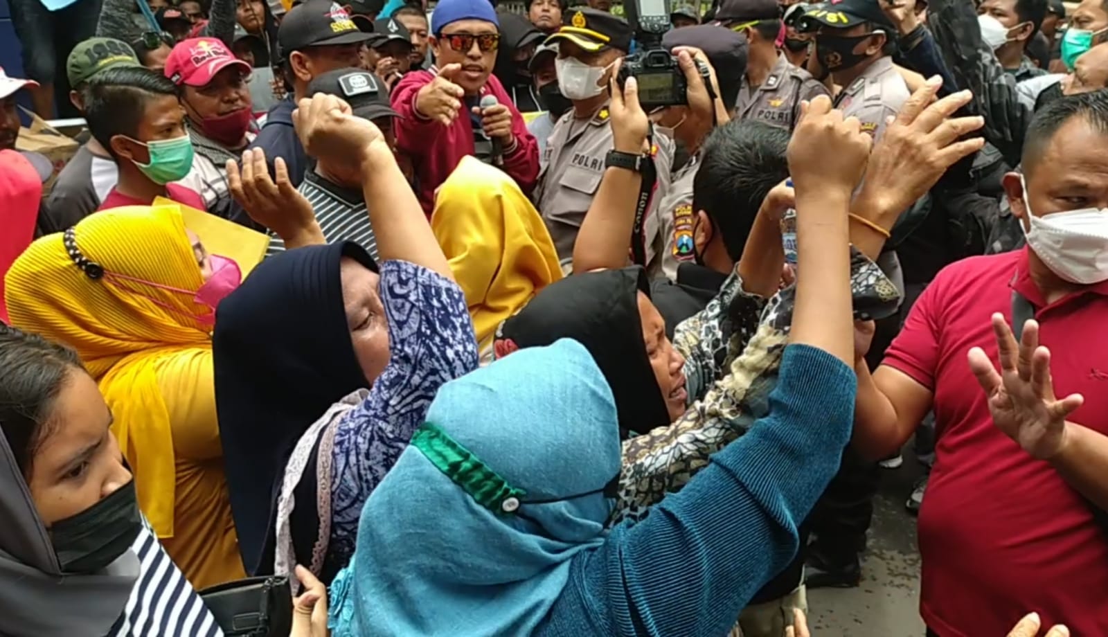 Massa yang datang nyaris ricuh dengan petugas keamanan. Lantaran mereka tidak diperbolehkan masuk dan mendekat dengan area Pelabuhan Kalbut Situbondo.